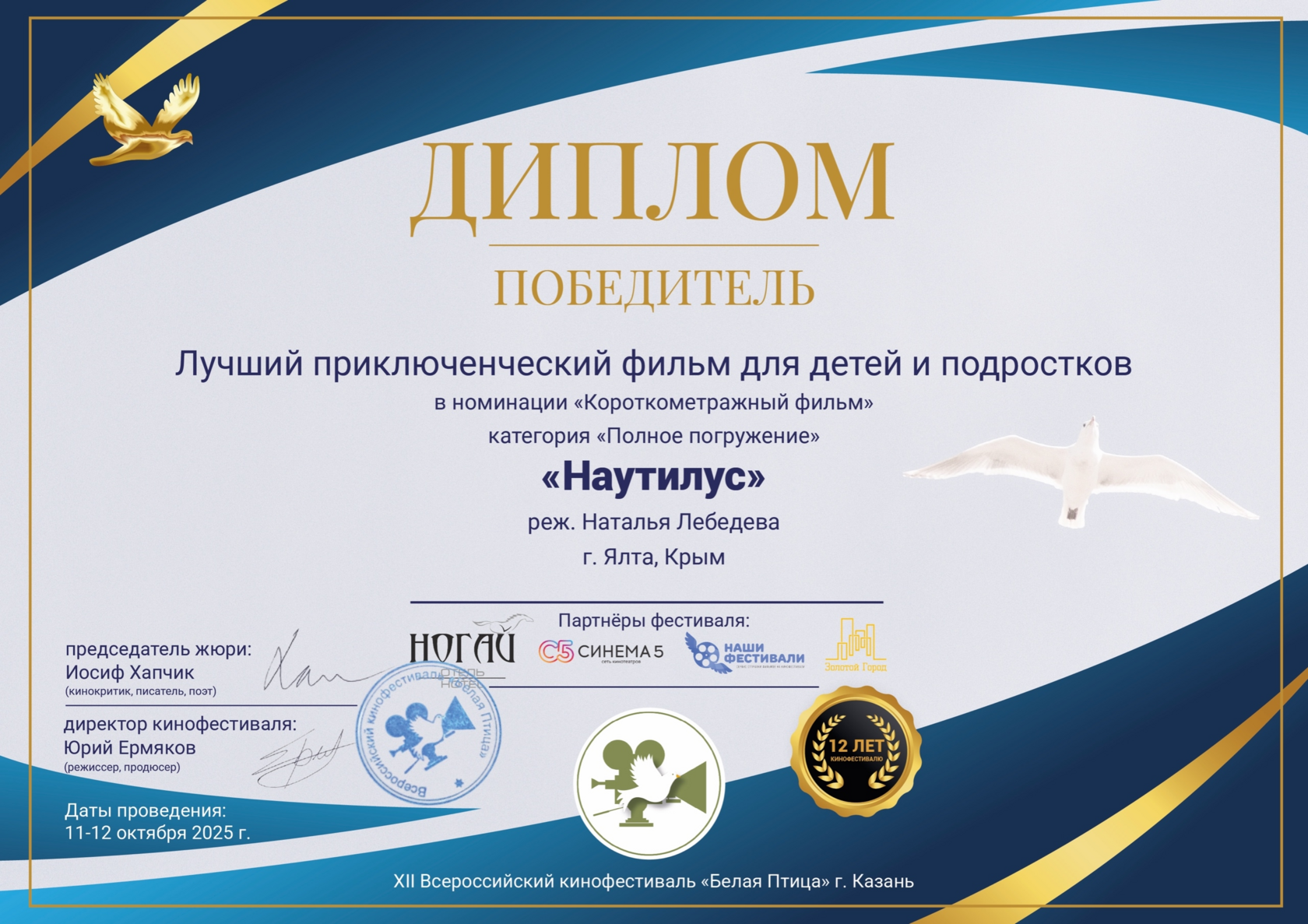 В номинации «Короткометражный фильм» категория «Полное погружение»!!!