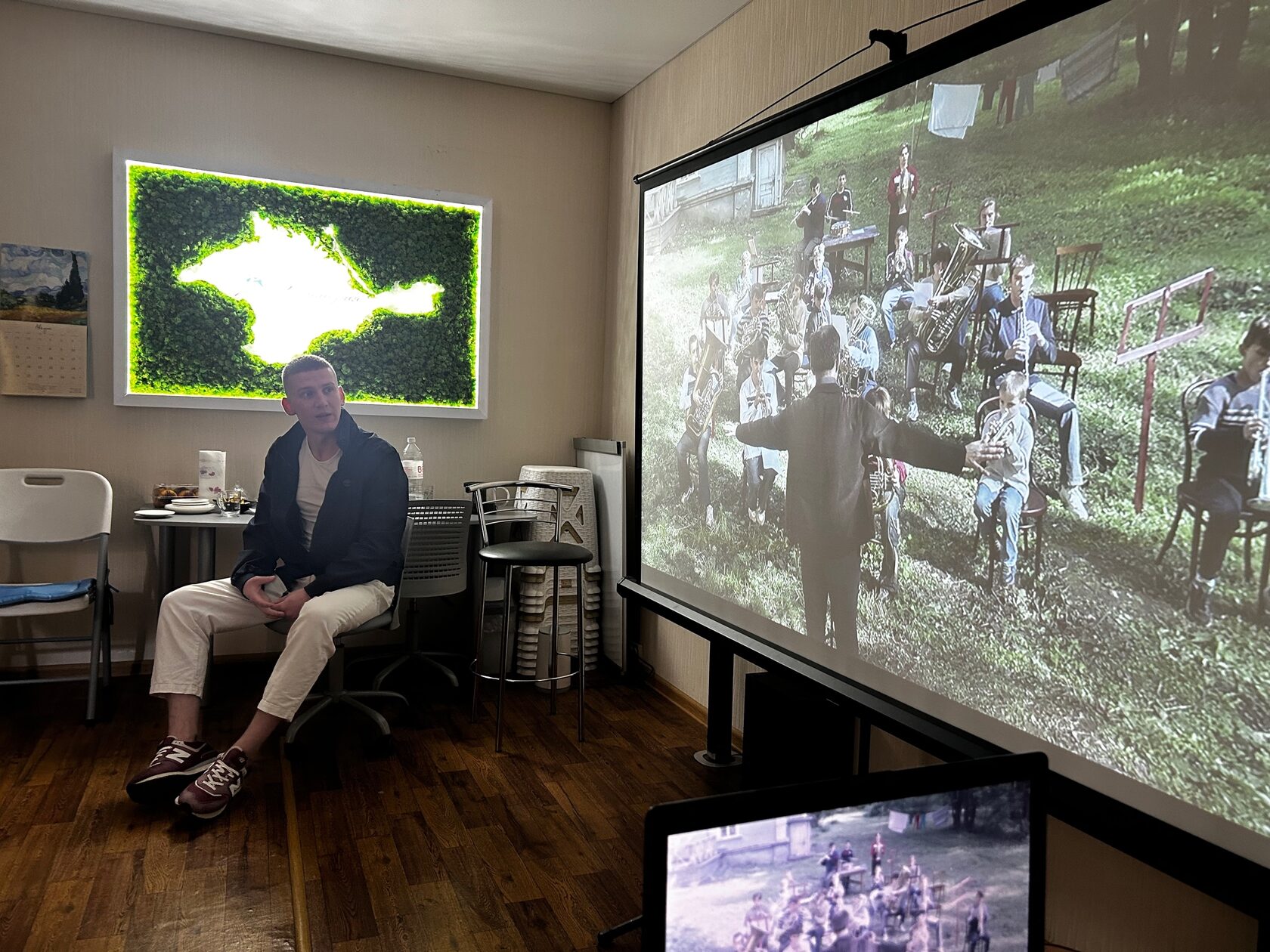 Дмитрий рассказал о своём пути в кино, о создании своих короткометражных фильмов «Колёса» и «Зови надежду сновидением», о значении в его жизни и творчестве мастеров А. Эшпая и В.Фенченко.